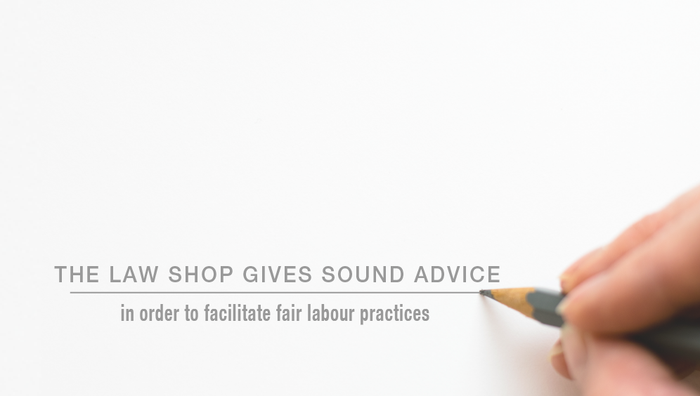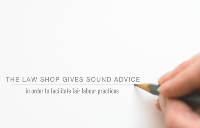 The professionals at the LAW Shop are all familiar with all aspects of employment law and will be responsible for managing, coordinating and implementing best practice and procedures and has the capacity to deal with various matters at the same time – quickly and cost effectively.